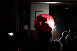 番傘に映し出されたシルエットからも、