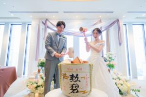と鏡開きをした後はおふたりからゲスト皆様へお裾分けです
