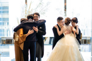 結婚式当日、おふたりが笑顔で楽しそうに皆様と過ごされているのを見ることができ、本当に嬉しかったです