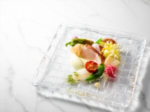 カリフラワーのピューレや塩麴のヴィネグレット、日向夏のジュレで味の変化も楽しめます
