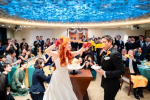お酒が好きなおふたりらしく、乾杯しながらのお色直し入場、
