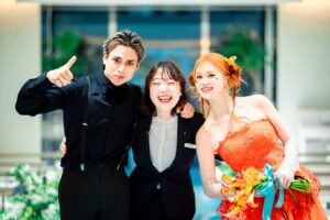 オレンジ色の髪の毛が印象的で、その色に負けないくらいの明るい笑顔が可愛い新婦ふゆこさん。